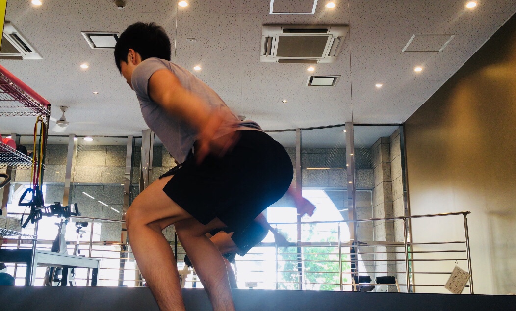 うまくエキセントリックフェーズからコンセントリックフェーズに弾性エネルギーを移行させる為に、ドロップスクワット “トランジションフェーズでの安定性を鍛える” トレーニングが有効です。