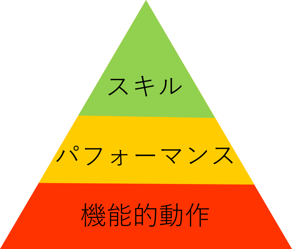 | ①機能的動作(身体操作の土台) | 関節可動性+安定性+姿勢+連動 | ・重心が安定する ・スムーズにしゃがむ/切り替える ・疲れてもフォームが崩れにくい |