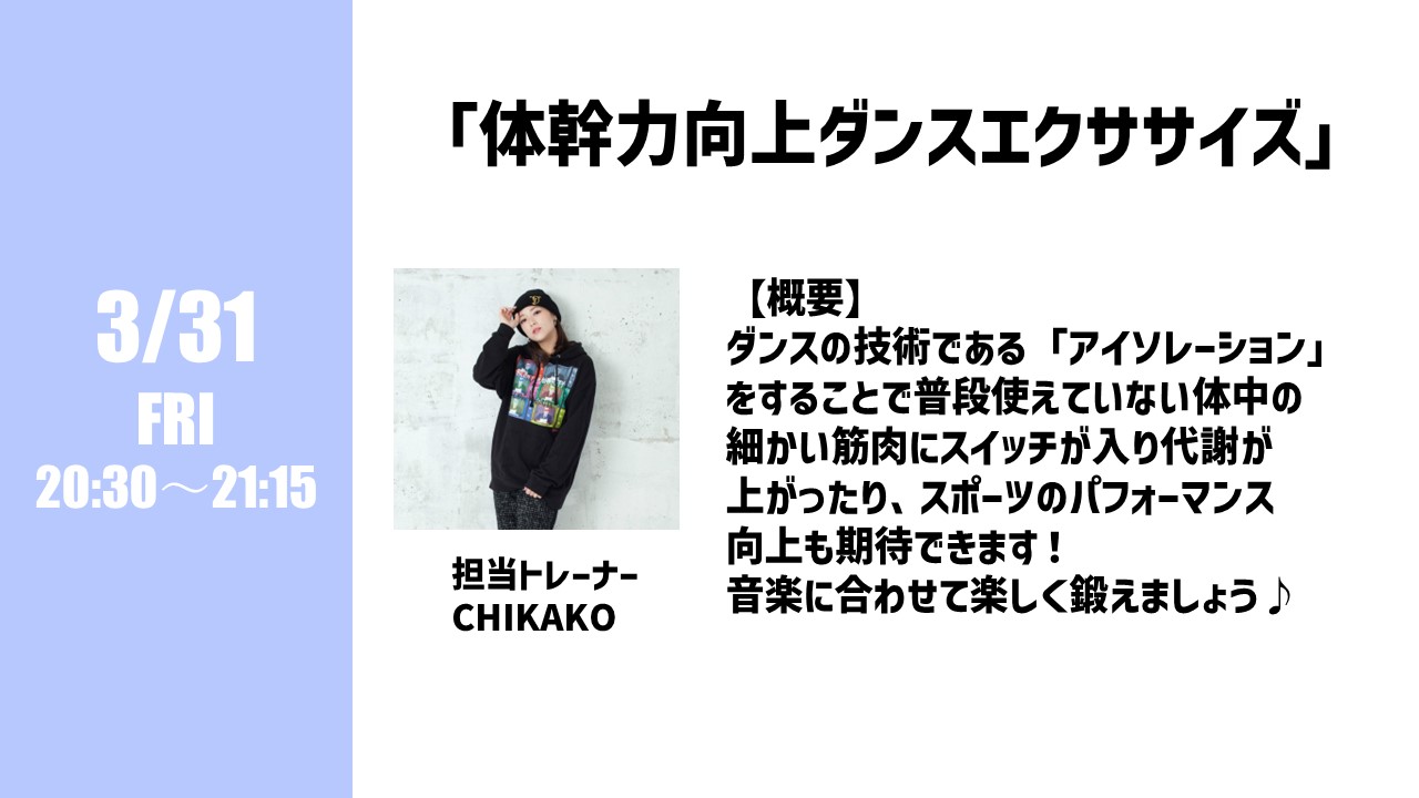 ④31日(金)20:30~21:15「体幹力向上ダンストレーニング」by SAKI